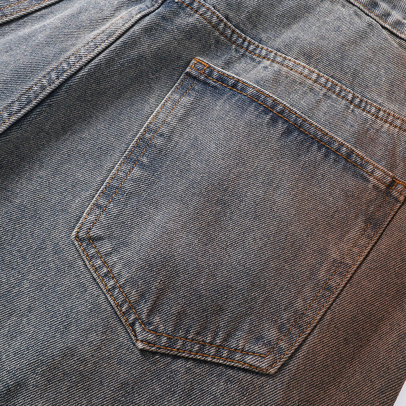 Fashionable retro jeans with multi-functional detachable pocket design, straight-leg pants suitable for both men and women, for relaxed and casual wear.