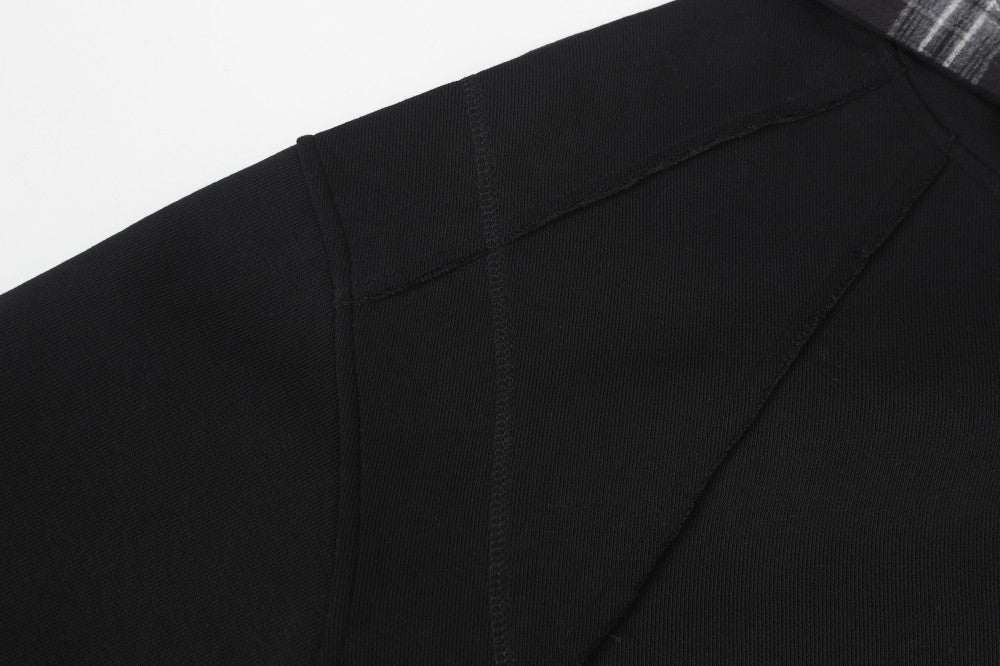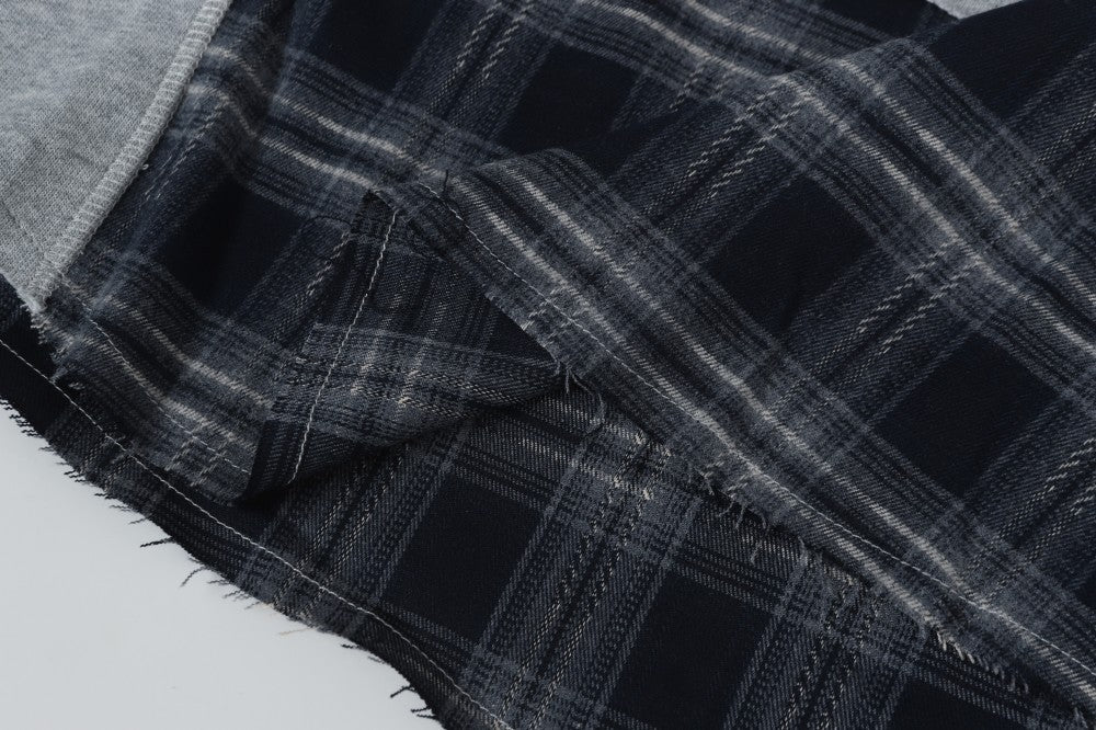 2025New Fake Two-Piece Distressed Plaid Patchwork Hooded Sweatshirt Unisex American Style Niche Loose Hoodie Trendy