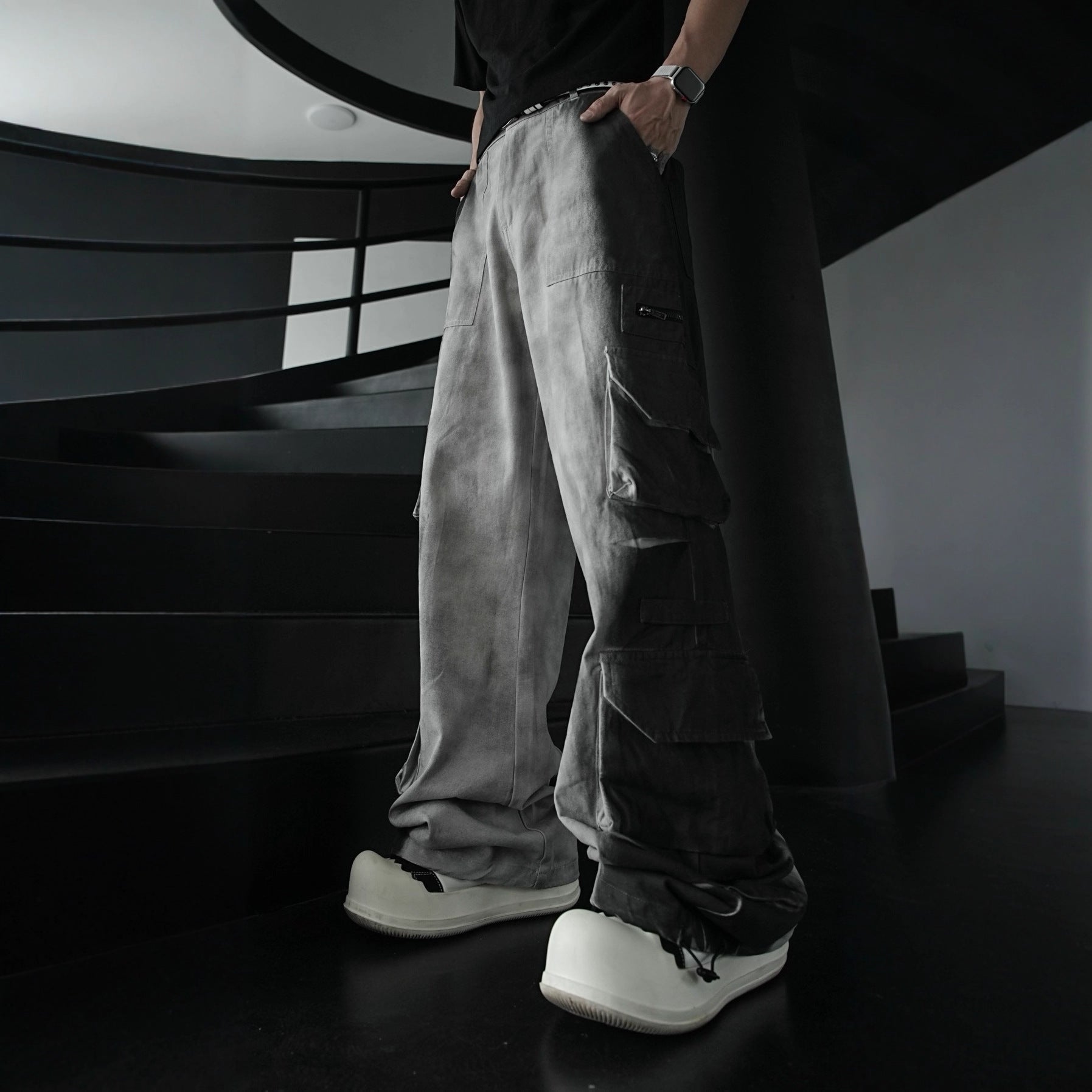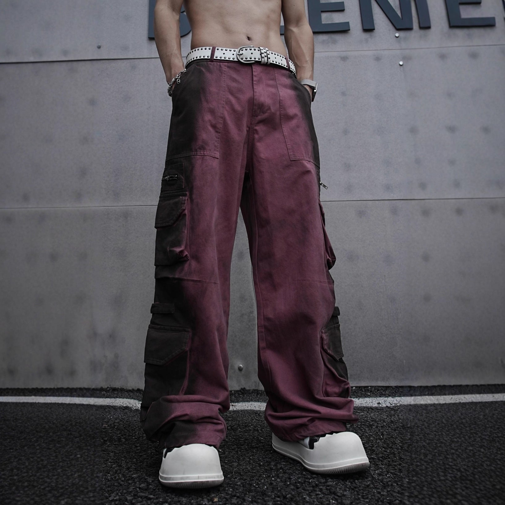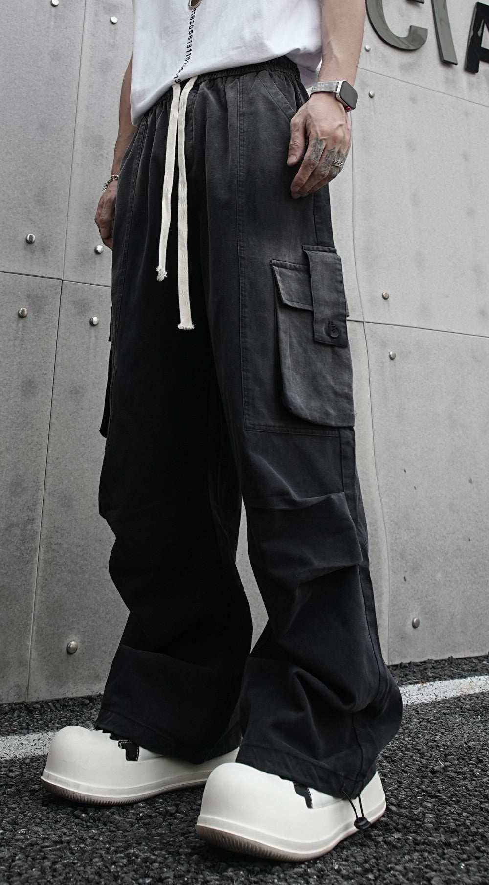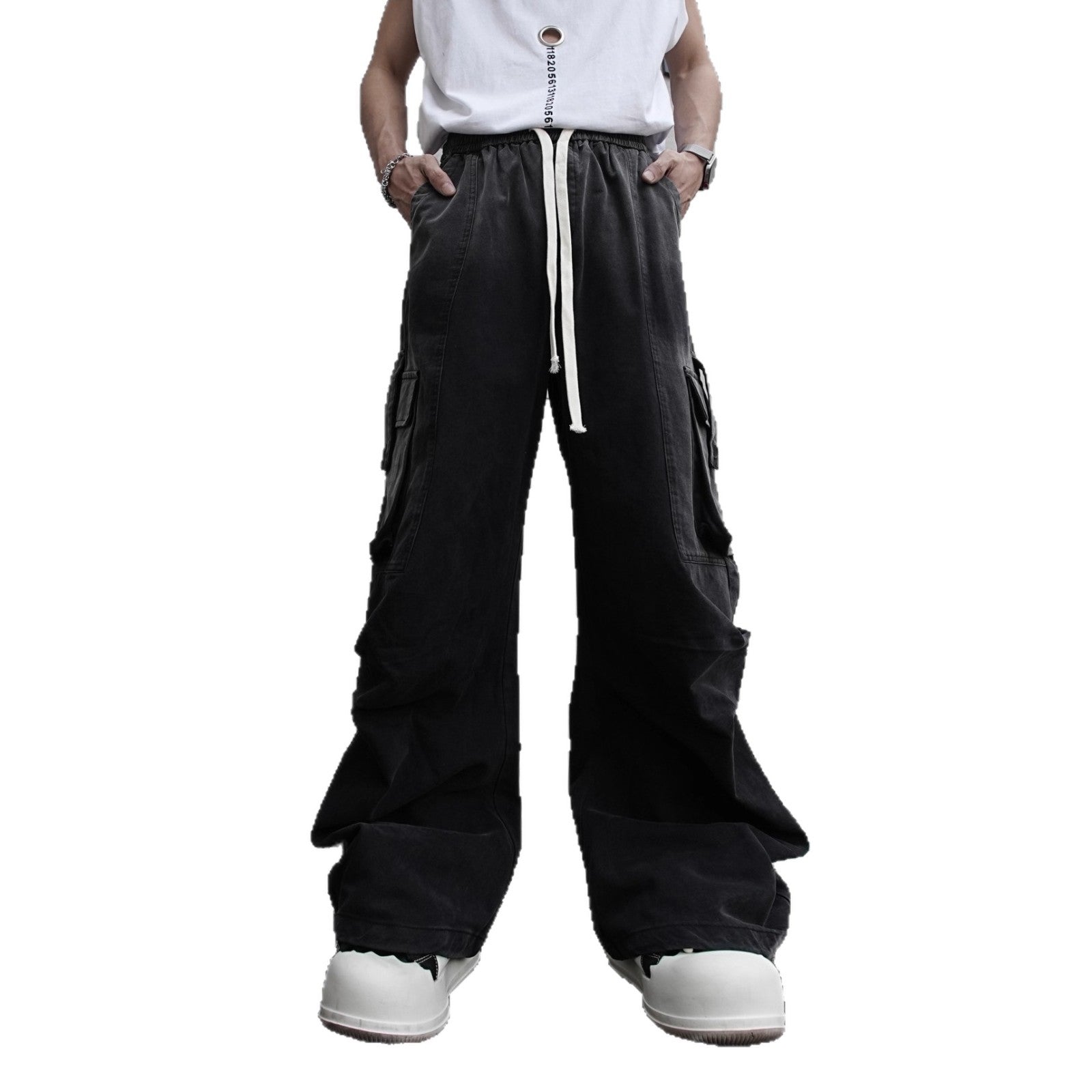 American Retro Wasteland Washed Vintage Multi-Pocket Cargo Pants Unisex Trendy Loose Straight Wide-Leg Casual Long Pants