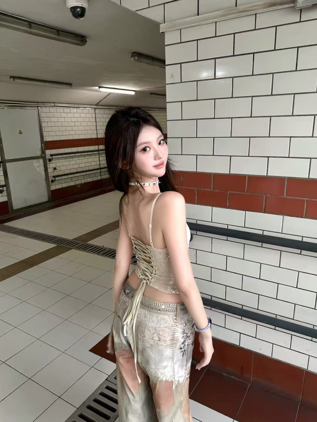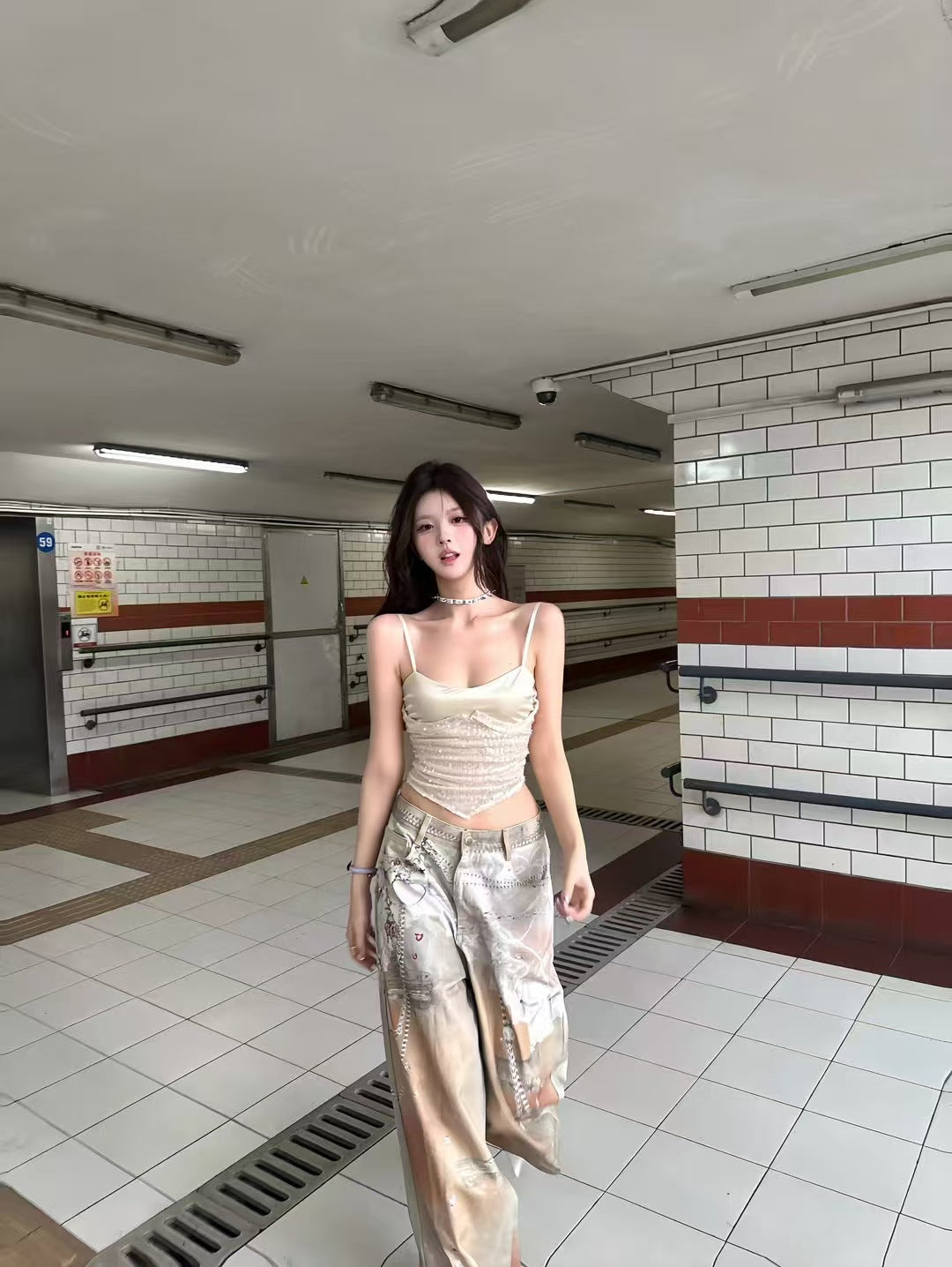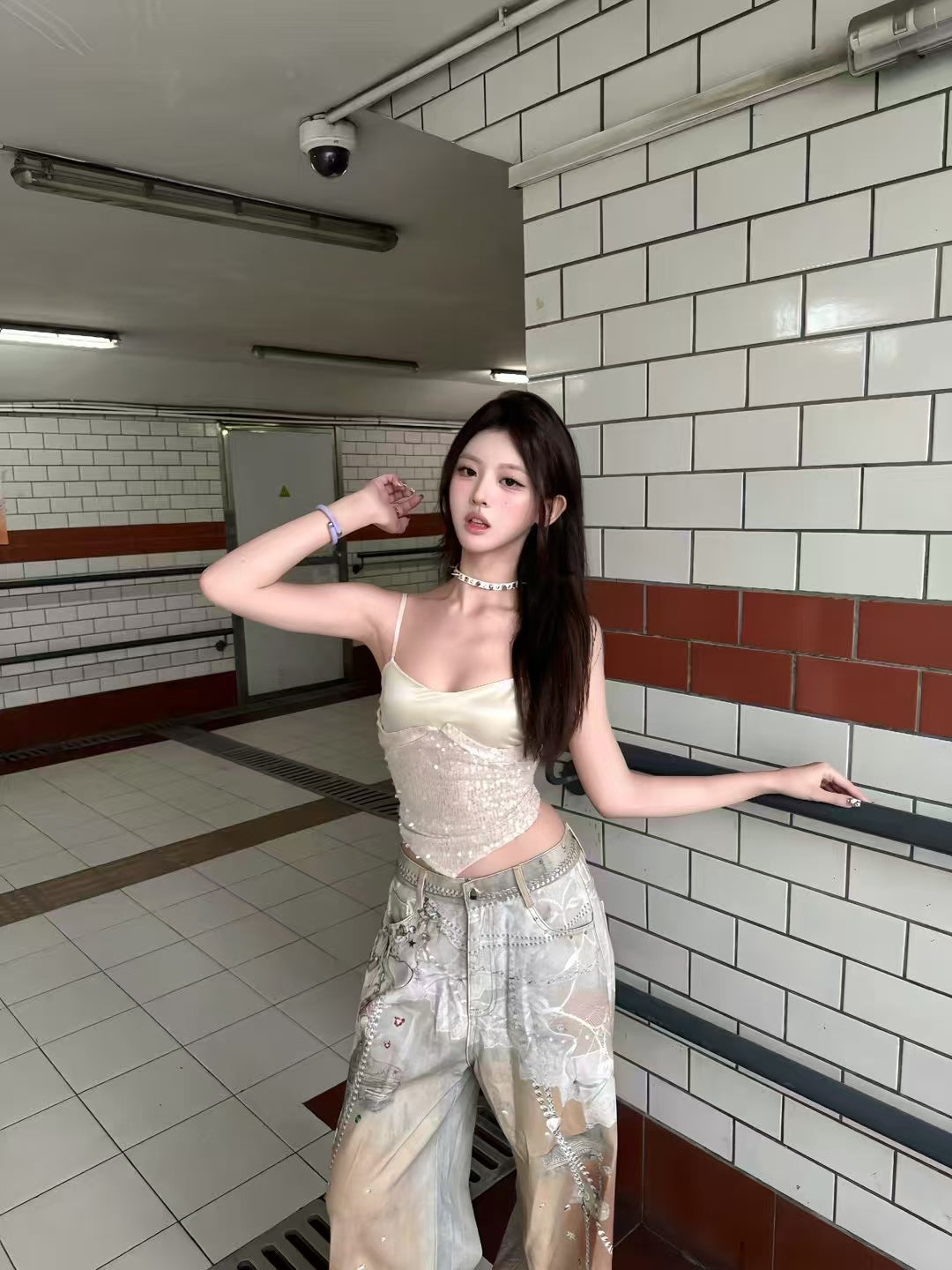 Cross-Border Heavy Industry Chain Print Jeans for Men and Women Summer American Style Straight-Leg Floor-Length Pants