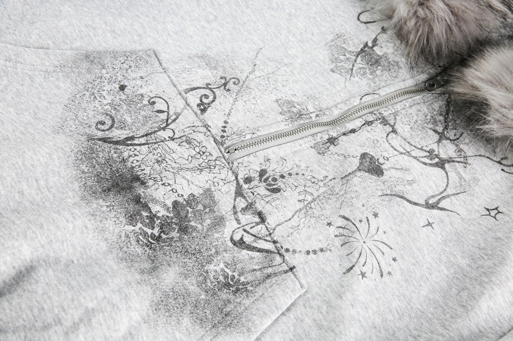 European and American Style Autumn Winter Fleece Hat Sweatshirt Hip Hop Printed Pattern Pullover Hoodie Street Fashion y2k Coat