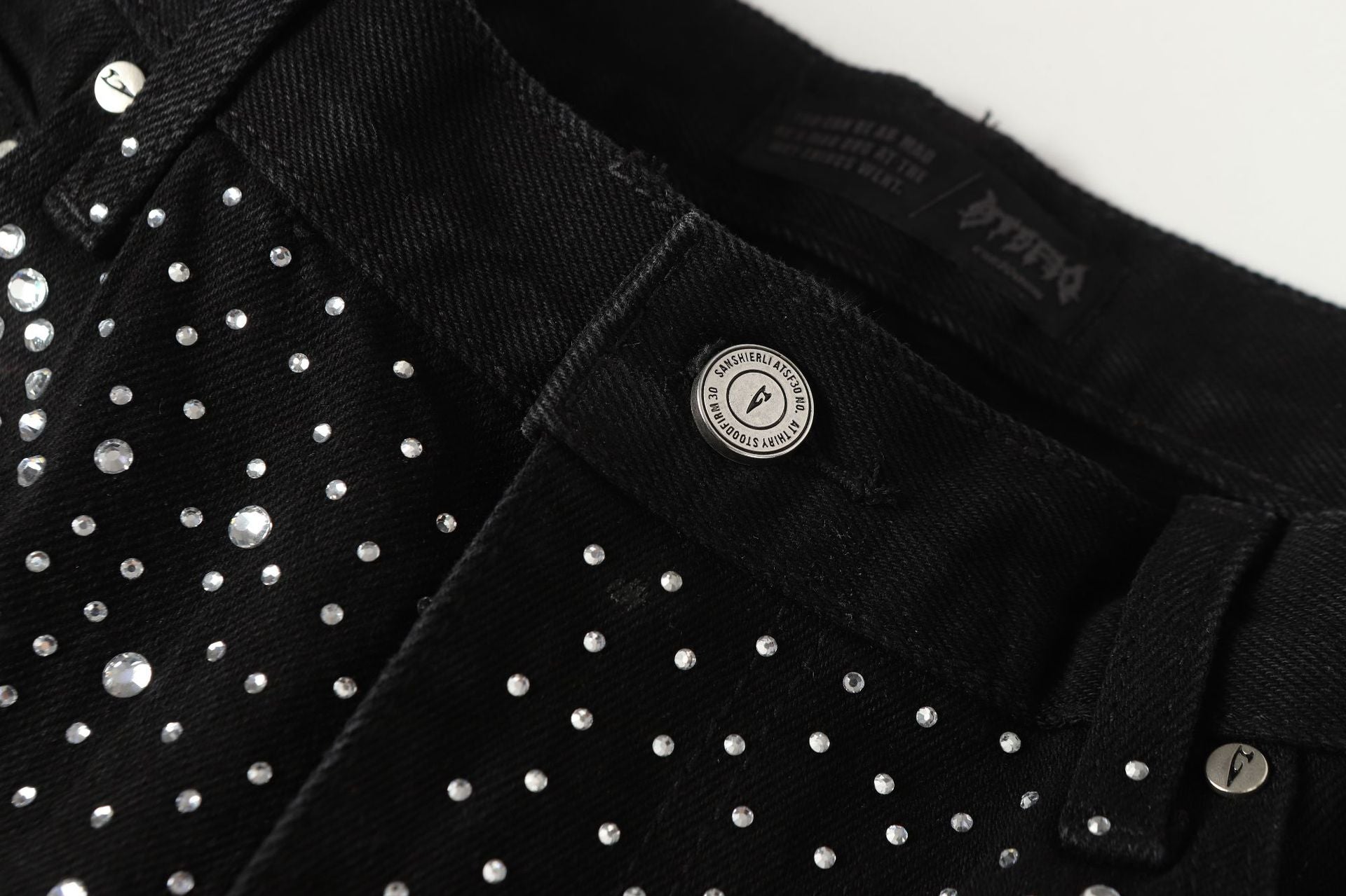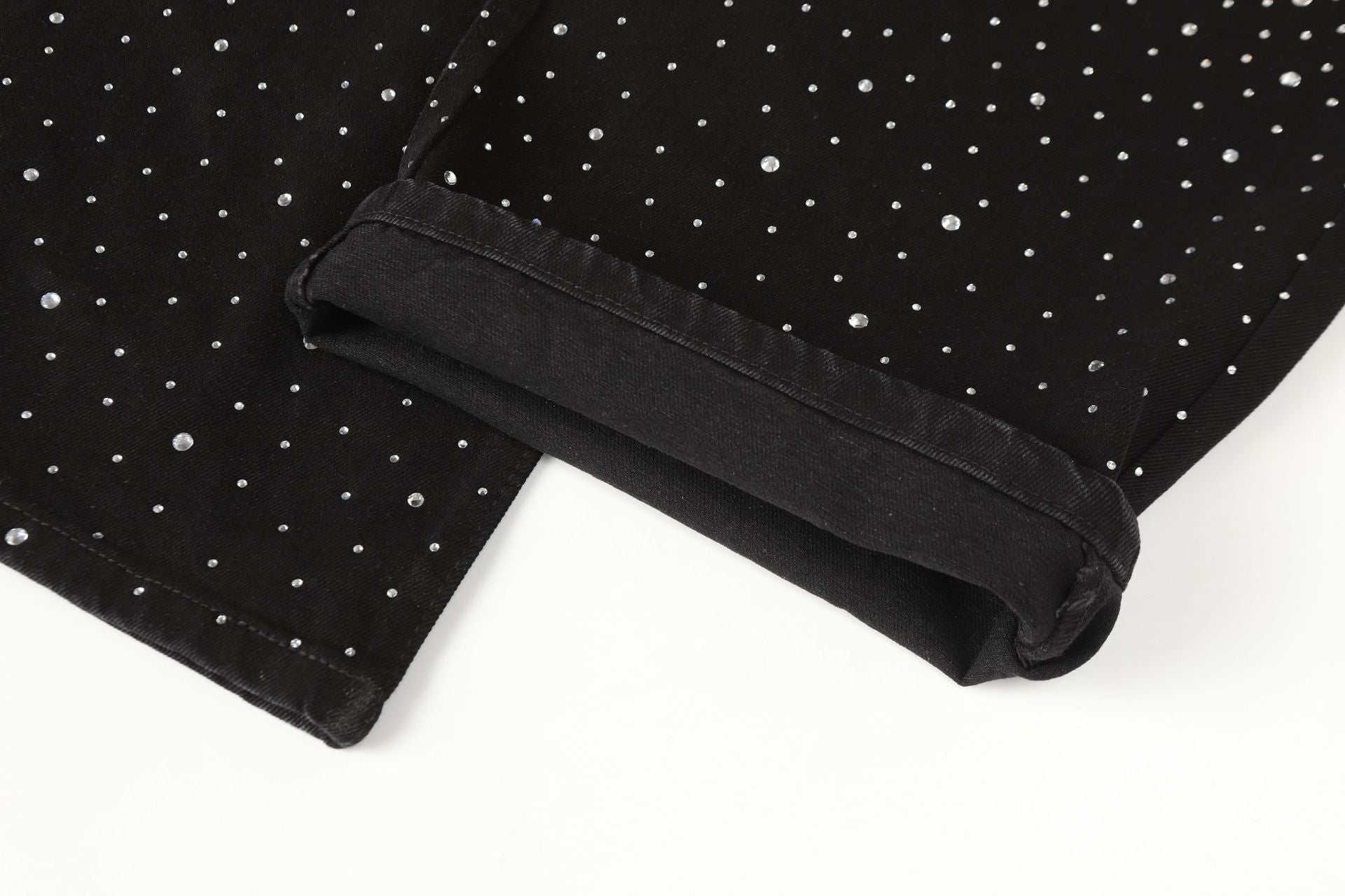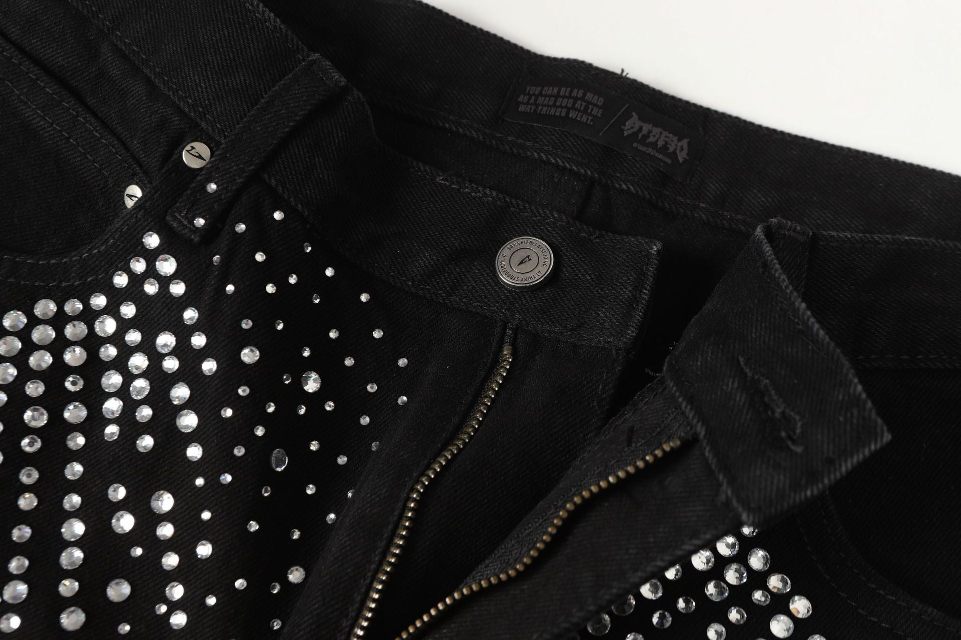 Fashion Versatile Trendy Long Pants Cross-Border Trade Washed American Retro Heavy-Duty Full Diamond Jeans for Men and Women