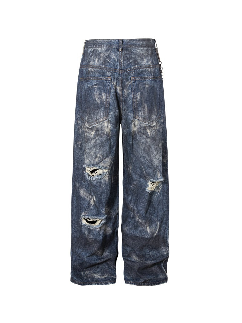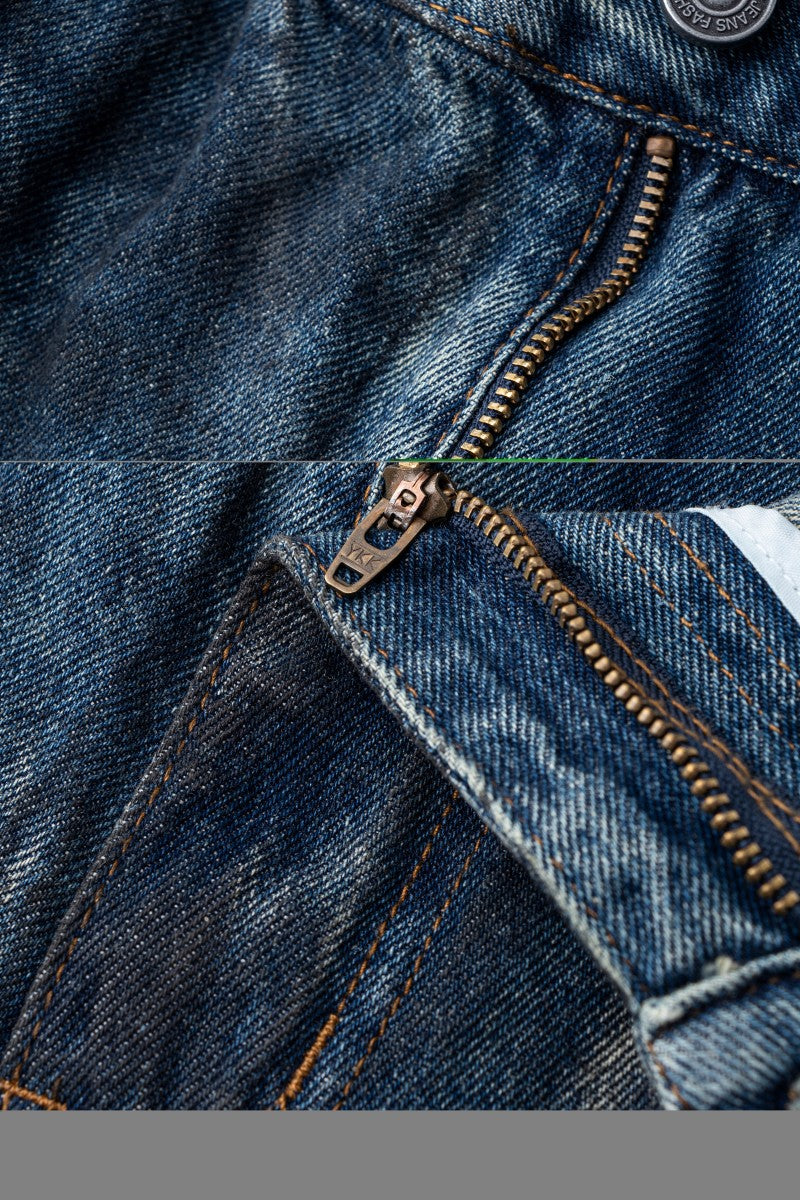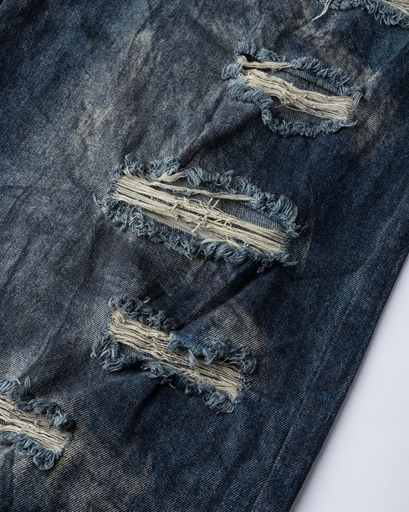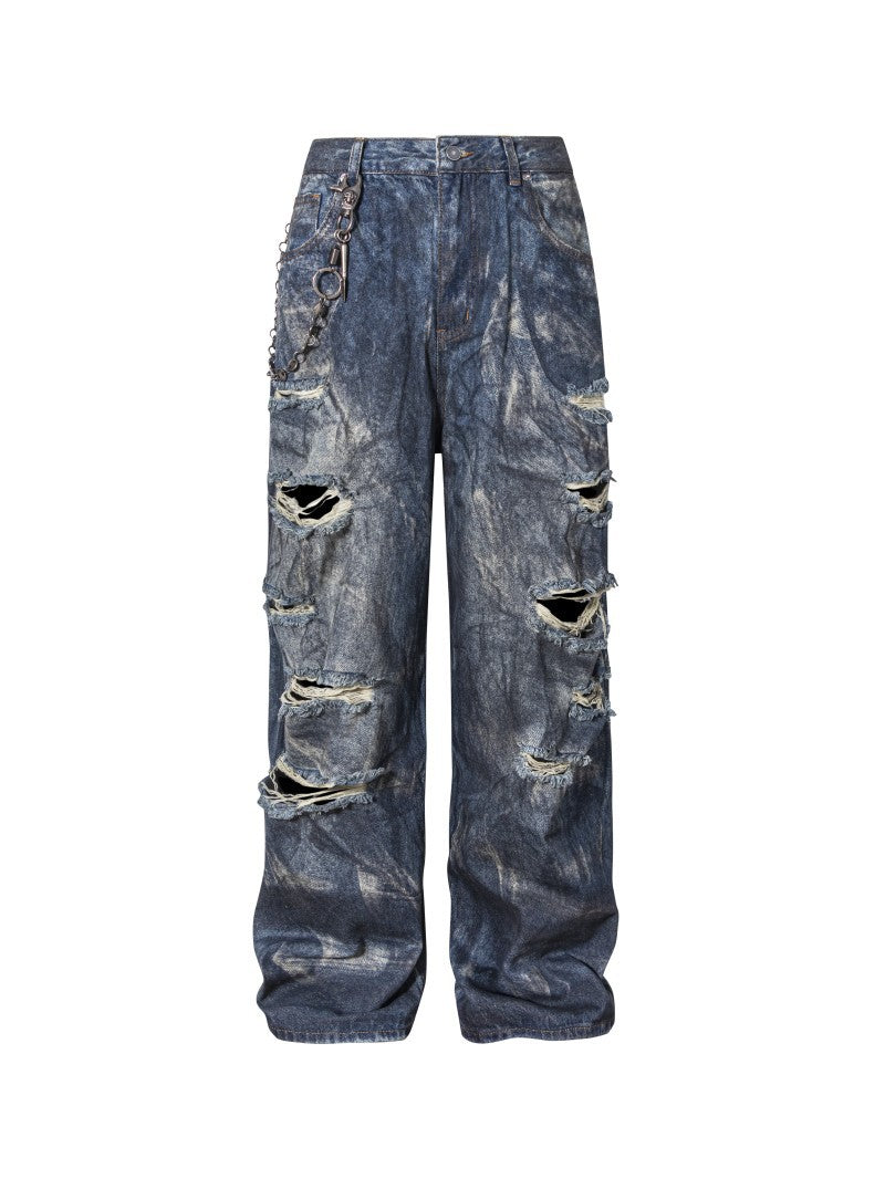 High-End European Version Spring Summer Men's Jeans Slim Straight Stretch Washed Ripped Wide-Leg Men's Pants