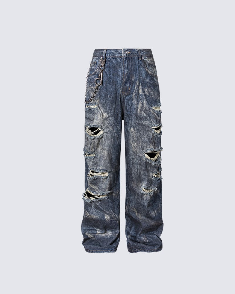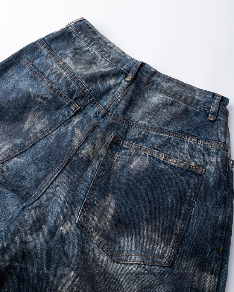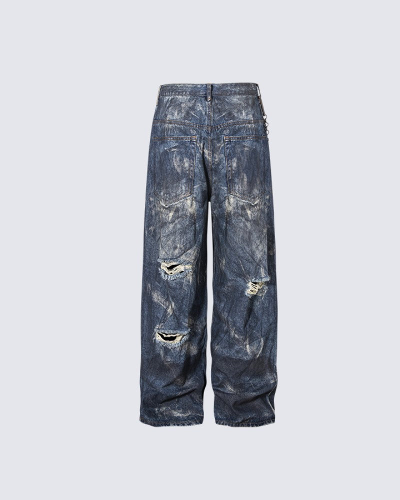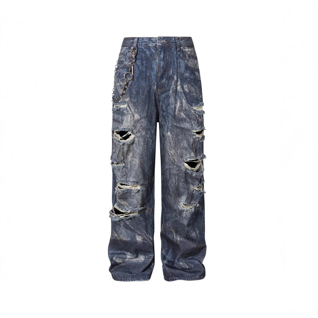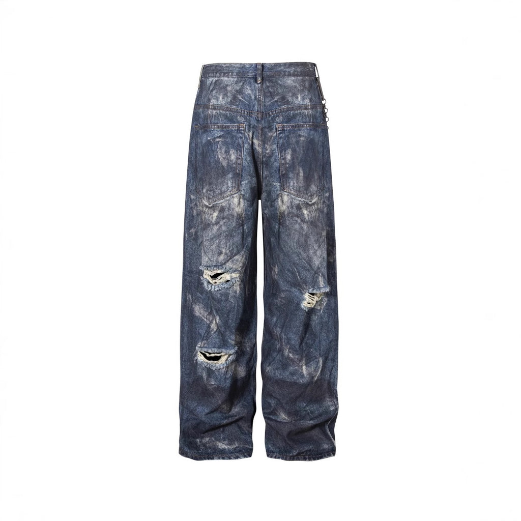 High-End European Version Spring Summer Men's Jeans Slim Straight Stretch Washed Ripped Wide-Leg Men's Pants