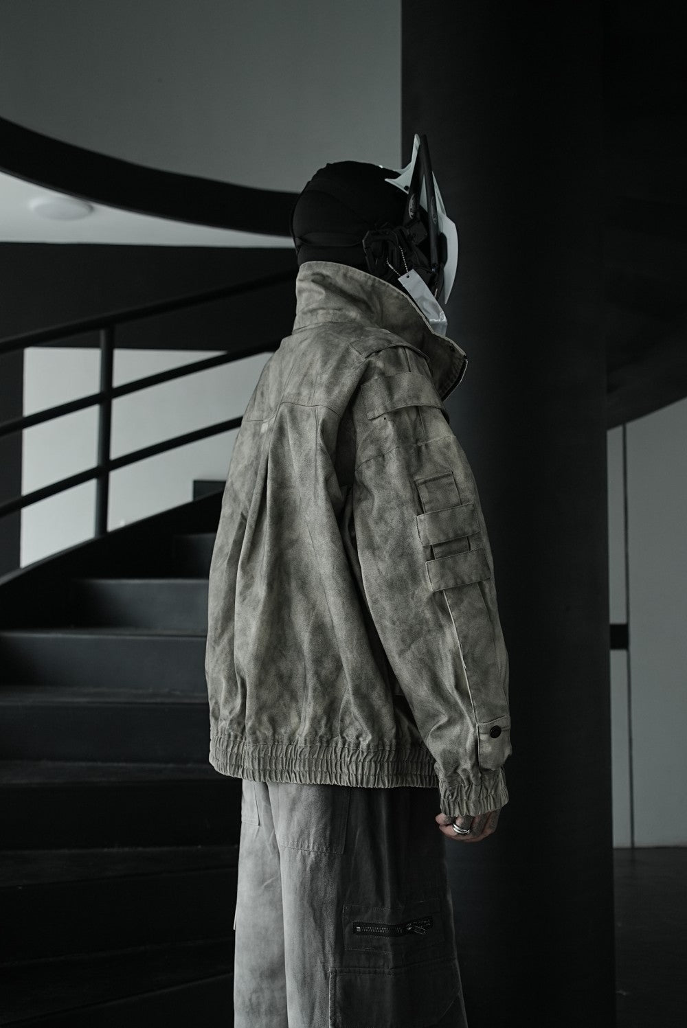 Japanese Trend Workwear Jacket for Men, Spring and Autumn Fashion, Loose Stand Collar Motorcycle Leather Jacket, Cool and Casual Versatile Jacket