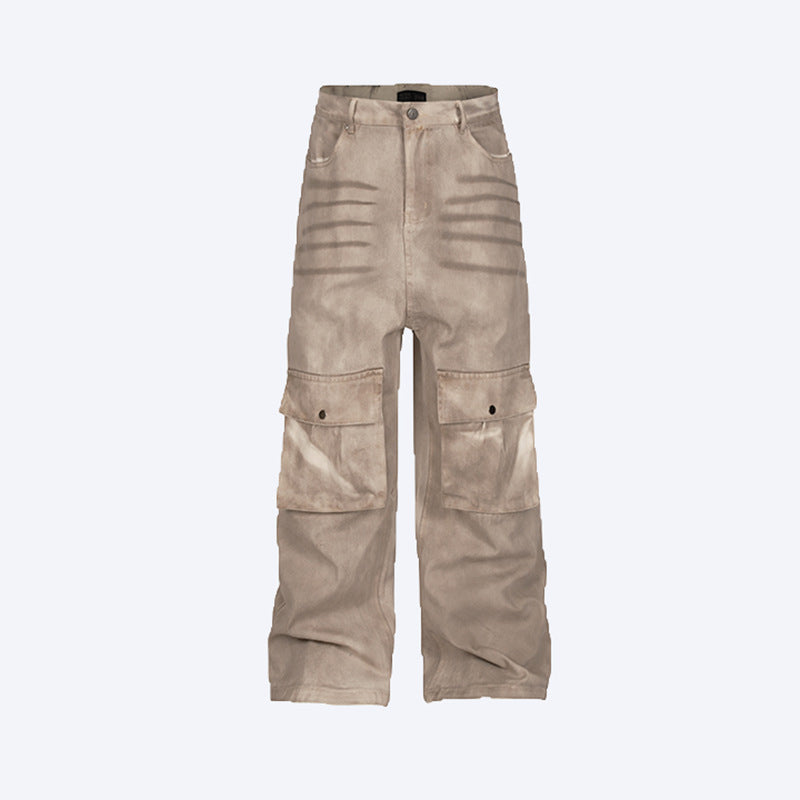 Marble Dark Pattern Straight Loose Fit A Men's Casual Flared Pants Trendy Lazy Style Cargo Pants