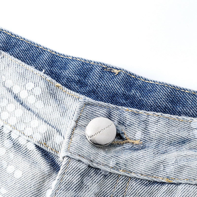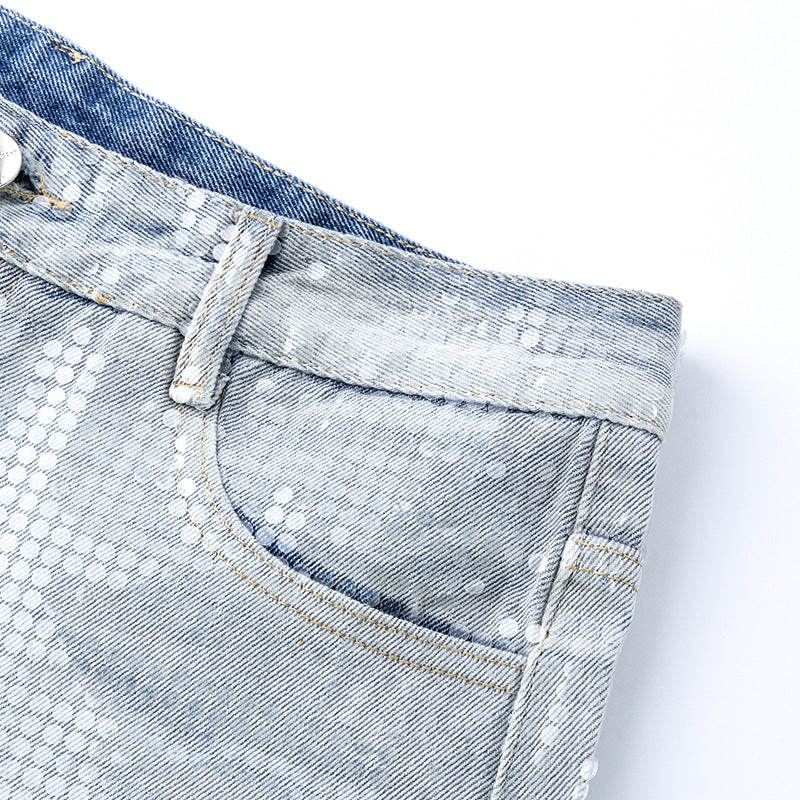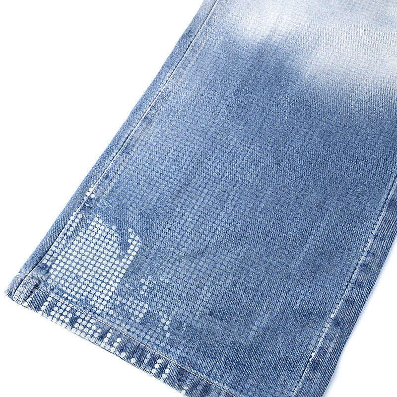Original Early Autumn New American Retro Street Style High Waist Slimming Rhinestone Gradient Design Loose Wide Leg Jeans
